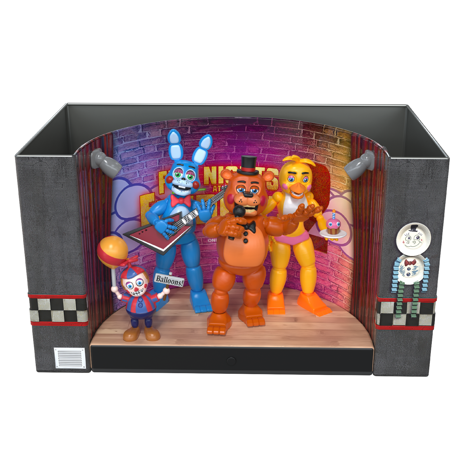 This illuminated popcorn bucket captures the iconic Freddy Fazbear band mid-performance on their legendary stage, complete with working lights on either side that bring the scene to life.
