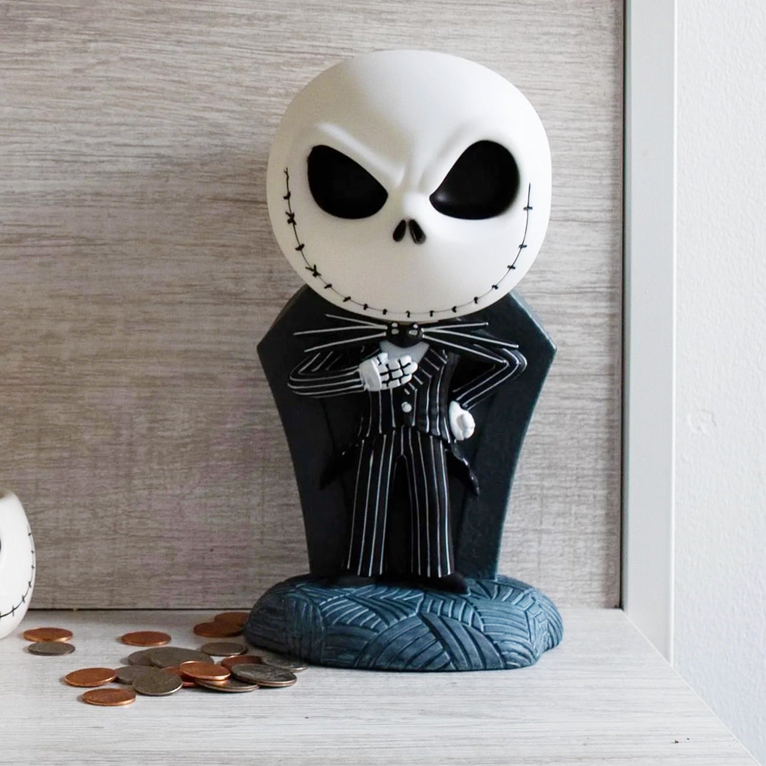 The Pumpkin King's grinning visage invites you to save your holiday haul in ghoulish style. Drop your coins into Jack's hollow skull, and watch your savings grow as steadily as his schemes to take over Christmas.