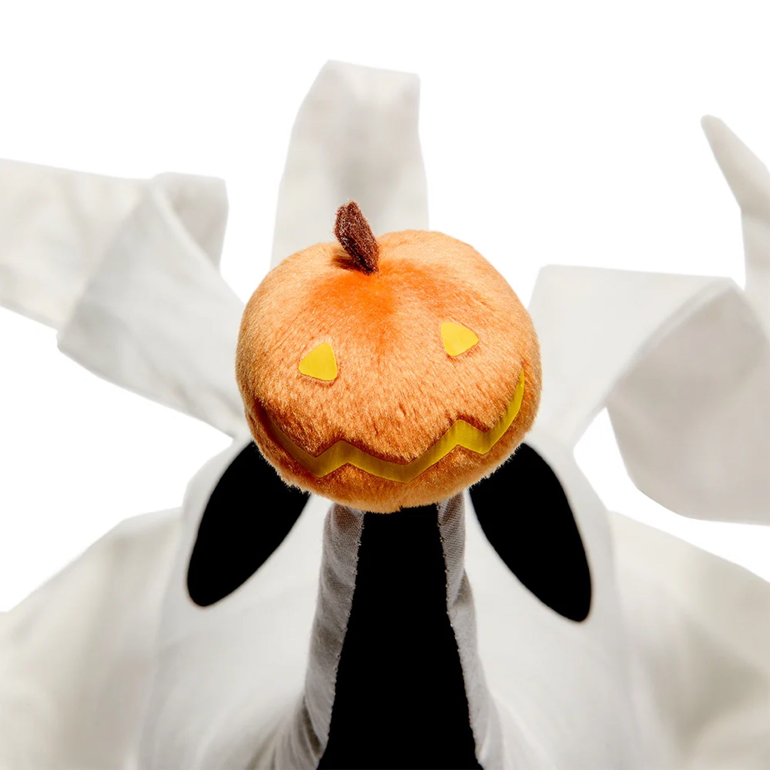 Zero, Jack Skellington's faithful ghost dog, features LED lights for a ghostly glow from body to nose. Standing 13 inches tall and 27 inches long, Zero has a super-soft plush head and a fabric body with an adjustable wireframe for poseability. Perfect for spooky and fun times all year long!