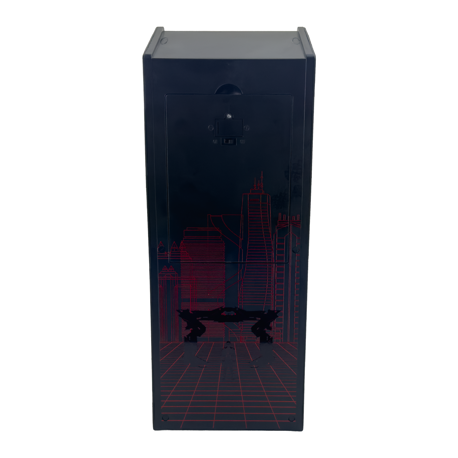 This detailed replica captures every circuit and light trail of classic arcade glory, complete with LED illumination that pulses with digital energy. Load your popcorn through the back panel and let the glow transport you from the theater to the arcade floor where it all began.